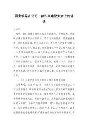 国企领导在公司干部作风建设大会上的讲话