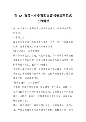在 XX 市第六小学第四届读书节启动仪式上的讲话