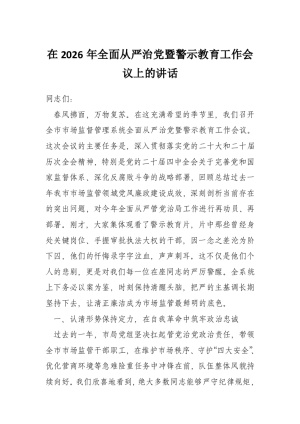 在2026年全面从严治党暨警示教育工作会议上的讲话
