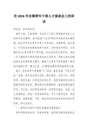 在2026年全镇青年干部人才座谈会上的讲话