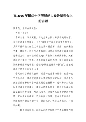 在2026年镇红十字基层能力提升培训会上的讲话