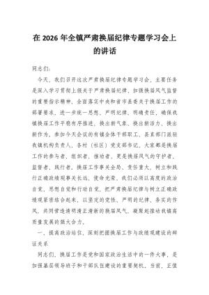 在2026年全镇严肃换届纪律专题学习会上的讲话