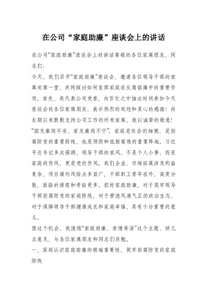 在公司“家庭助廉”座谈会上的讲话(1)