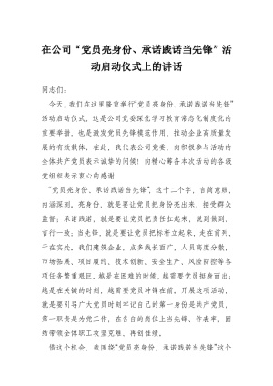在公司“党员亮身份、承诺践诺当先锋”活动启动仪式上的讲话