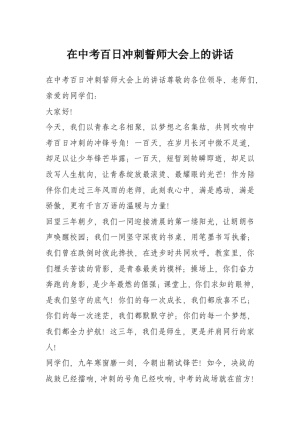 在中考百日冲刺誓师大会上的讲话