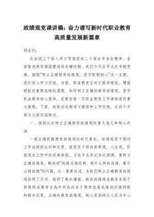 政绩观党课讲稿:奋力谱写新时代职业教育高质量发展新篇章