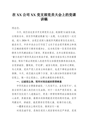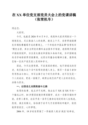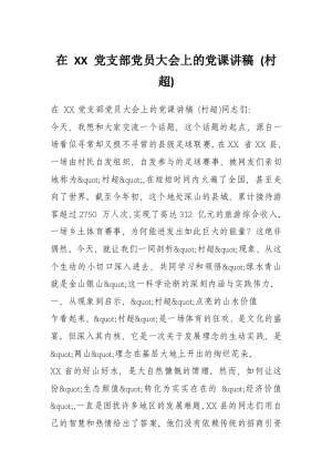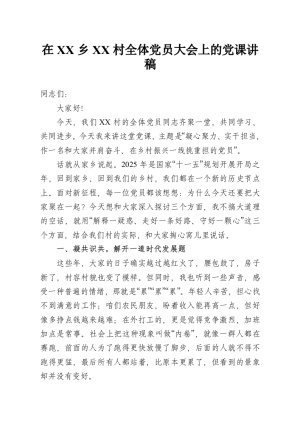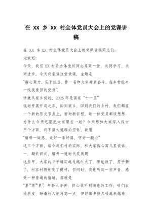 在 XX 乡 XX 村全体党员大会上的党课讲稿