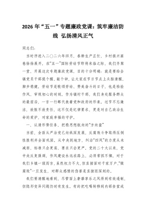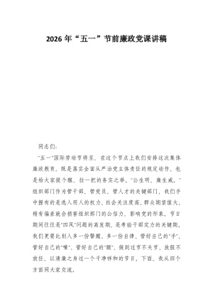 2026年“五一”节前廉政党课讲稿