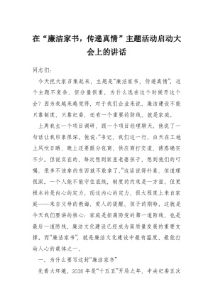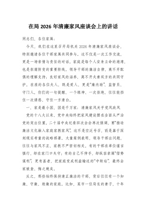 在局2026年清廉家风座谈会上的讲话