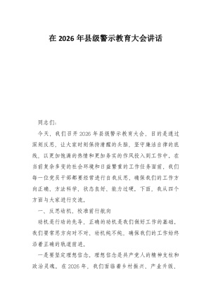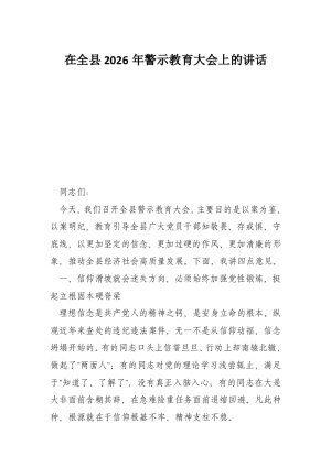 在 XX 县 2026 年全县警示教育大会上的讲话