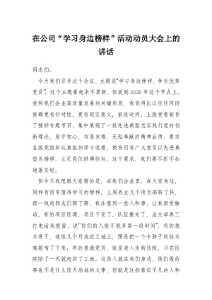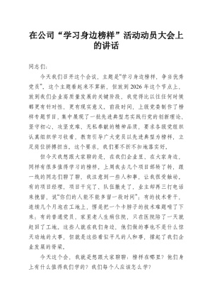在公司“学习身边榜样”活动动员大会上的讲话