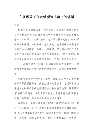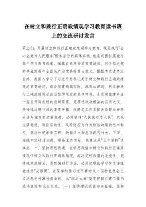 在树立和践行正确政绩观学习教育读书班上的交流研讨发言