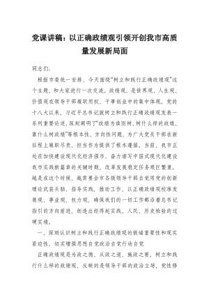 党课讲稿:以正确政绩观引领开创我市高质量发展新局面