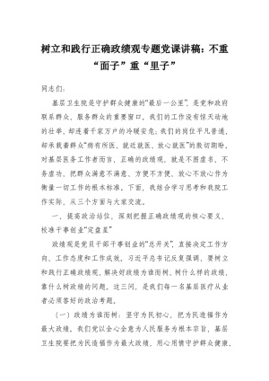 树立和践行正确政绩观专题党课讲稿:不重“面子”重“里子”