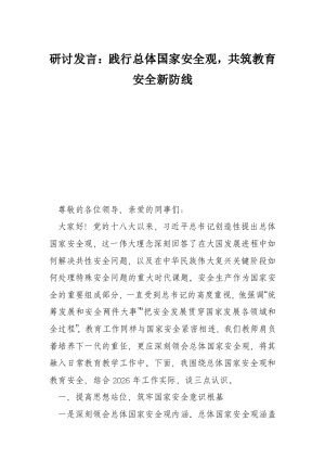 研讨发言:践行总体国家安全观,共筑教育安全新防线