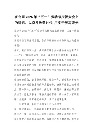 在公司2026年“五一”劳动节庆祝大会上的讲话:以奋斗致敬时代 用实干续写荣光