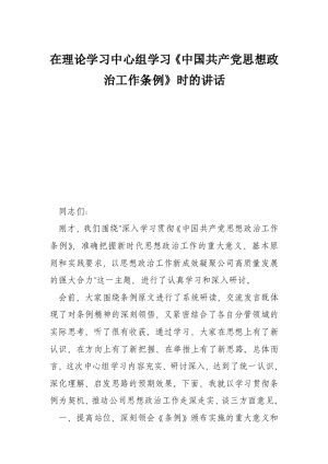 在理论学习中心组学习《中国***思想政治工作条例》会上的讲话