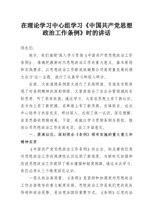 在理论学习中心组学习《中国***思想政治工作条例》时的讲话