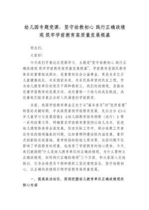 幼儿园专题党课:坚守幼教初心 践行正确政绩观 筑牢学前教育高质量发展根基