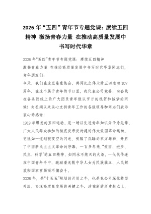 2026年“五四”青年节专题党课:赓续五四精神 激扬青春力量 在推动高质量发展中书写时代华章