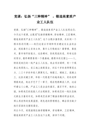 党课:弘扬“三种精神” ,锻造高素质产业工人队伍