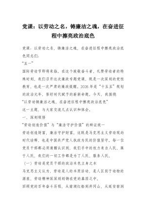 党课:以劳动之名,铸廉洁之魂,在奋进征程中擦亮政治底色