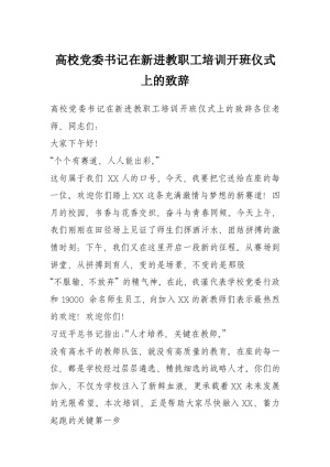 高校党委书记在新进教职工培训开班仪式上的致辞