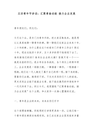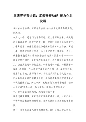 五四青年节讲话:汇聚青春动能 接力企业发展