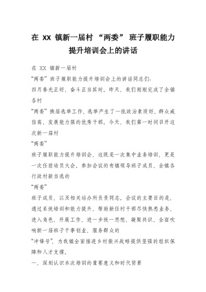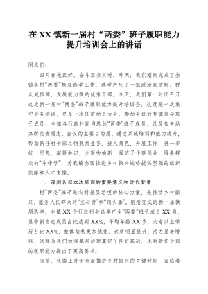 在 XX 镇新一届村 “两委” 班子履职能力提升培训会上的讲话