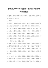 普通党员学习贯彻党的二十届四中***精神研讨发言