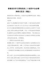 普通党员学习贯彻党的二十届四中***精神研讨发言(精品)