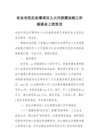 在全市民生实事项目人大代表票决制工作座谈会上的发言
