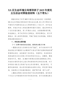 XX区生态环境分局领导班子2025年度民主生活会对照检查材料(五个带头)
