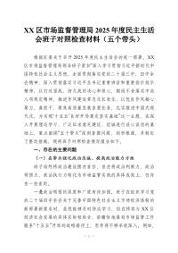 XX区市场监督管理局2025年度民主生活会班子对照检查材料(五个带头)