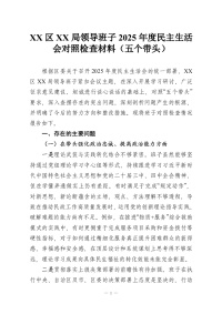 XX区XX局领导班子2025年度民主生活会对照检查材料(五个带头)