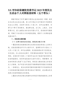 XX市妇幼保健院党委书记2025年度民主生活会个人对照检查材料(五个带头)