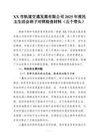 XX市轨道交通发展有限公司2025年度民主生活会班子对照检查材料(五个带头)