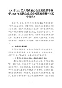 XX市XX区人民***办公室党组领导班子2025年度民主生活会对照检查材料(五个带头)