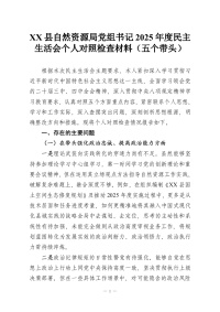 XX县自然资源局党组书记2025年度民主生活会个人对照检查材料(五个带头)