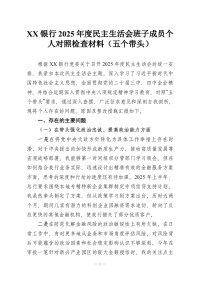 XX银行2025年度民主生活会班子成员个人对照检查材料(五个带头)