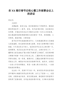 在XX银行春节后收心暨工作部署会议上的讲话