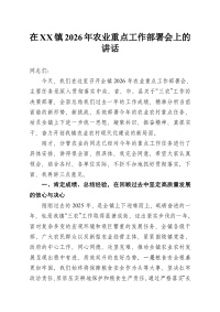 在XX镇2026年农业重点工作部署会上的讲话