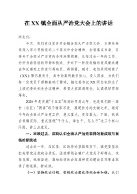 在XX镇全面从严治党大会上的讲话