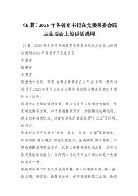 (9篇)2025年各省市书记在党委常委会民主生活会上的讲话提纲