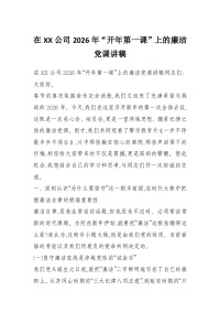 在XX公司2026年“开年第一课”上的廉洁党课讲稿
