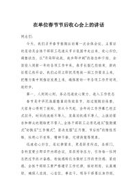 在单位春节节后收心会上的讲话