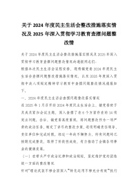 关于2024年度民主生活会整改措施落实情况及2025年深入贯彻学习