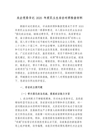 央企党委书记2025年度民主生活会对照检查材料(1)
