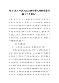 银行2025年度民主生活会个人对照检查材料(五个带头)