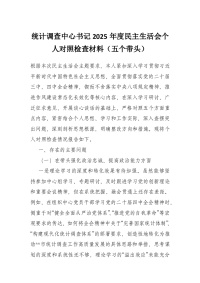 统计调查中心书记2025年度民主生活会个人对照检查材料(五个带头)